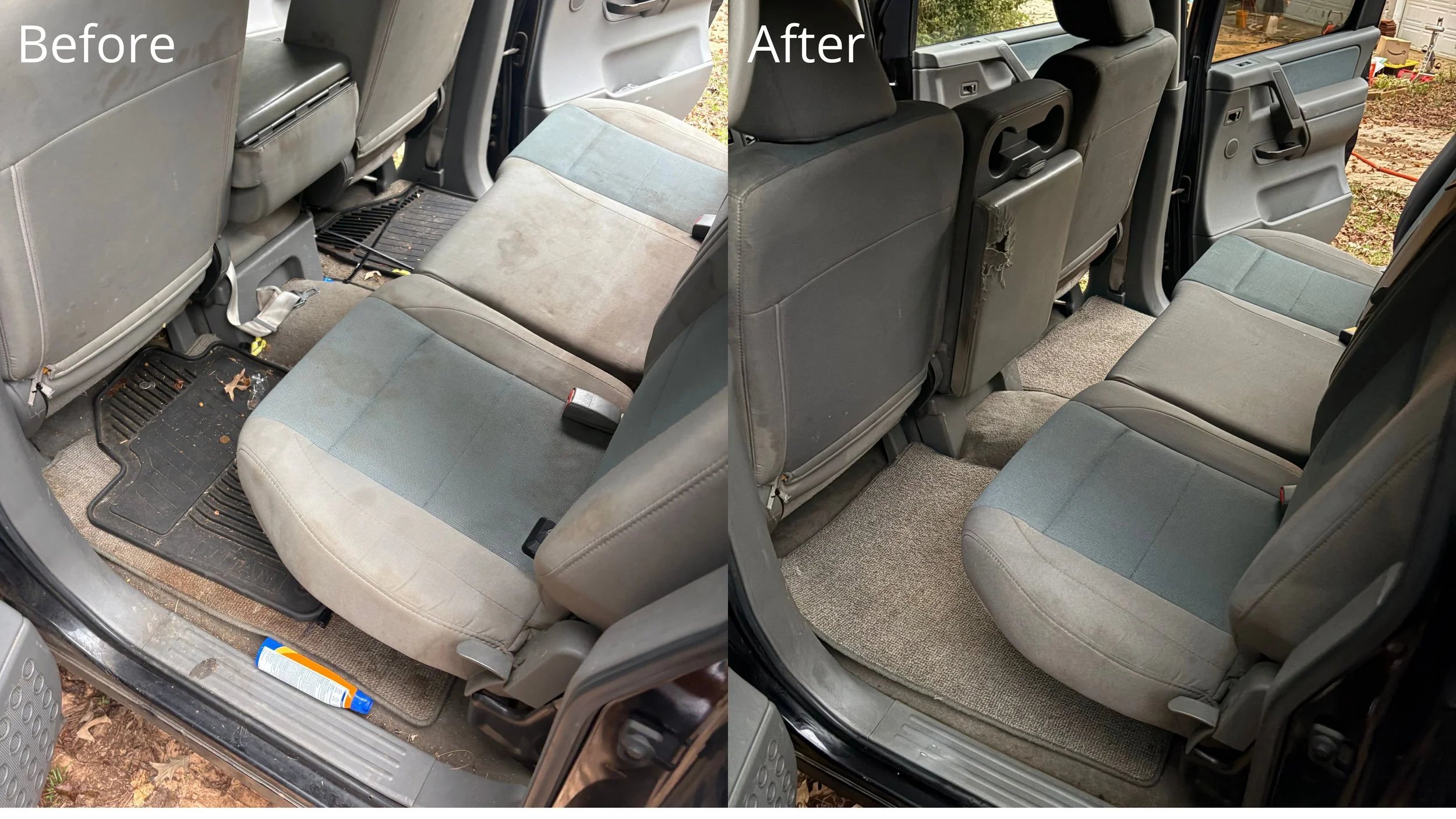 Results: After a full interior restoration, the transformation spoke for itself. The seats went from dull and stained to fresh and uniform, and every surface looked brand new again. The carpets were completely revived, and the interior smelled clean without being overpowered by scent. What was once a heavily used truck now looks and feels ready for anything — from job sites to weekend drives.